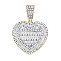 10kt Yellow Gold Mens Baguette Diamond Heart Charm Pendant 1-1/3 Cttw