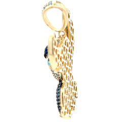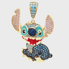 This vibrant pendant features a playful Stitch design, adorned with sparkling gemstones that catch the light beautifully. Perfect for fans of the beloved character, it adds a whimsical touch to any outfit. Wear it as a statement piece or gift it to someone special who cherishes unique jewelry.