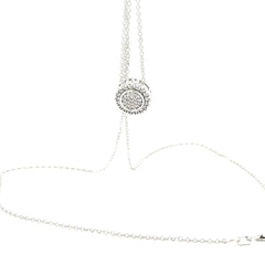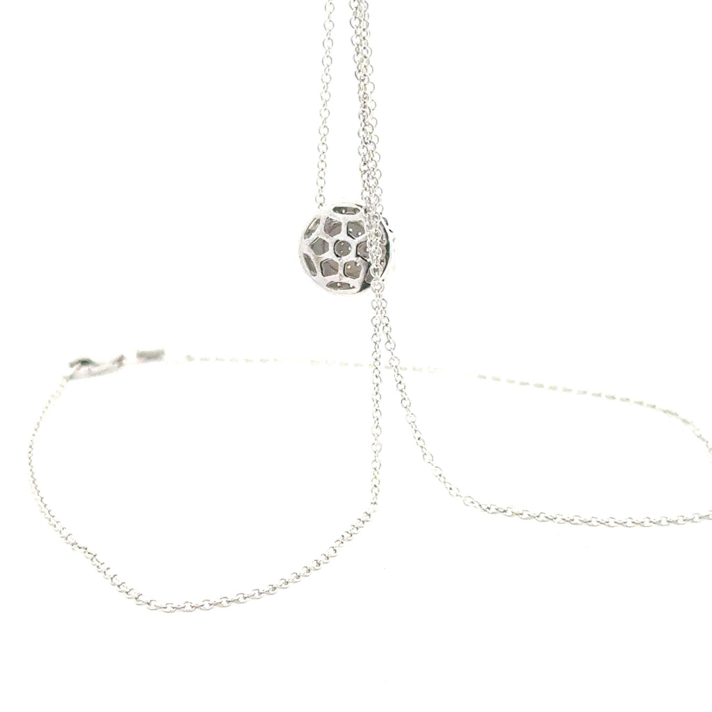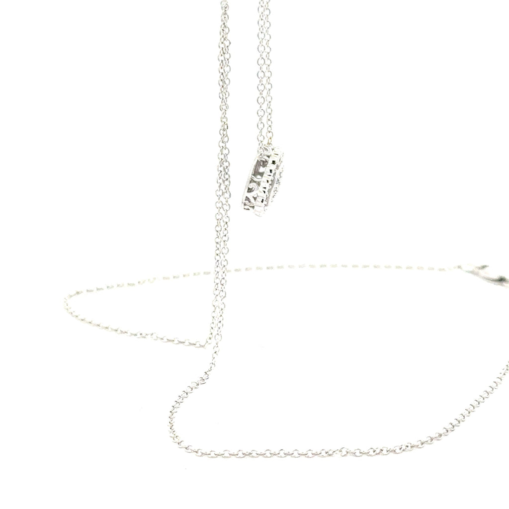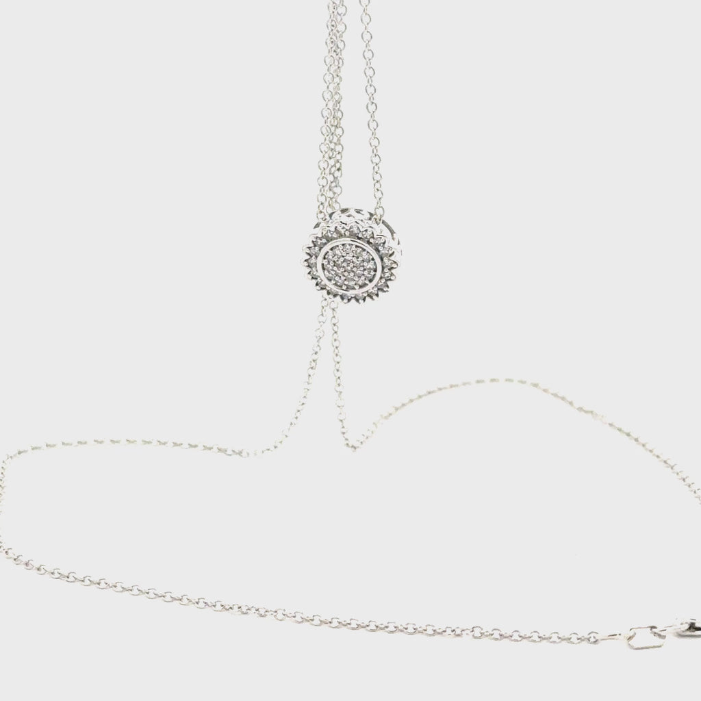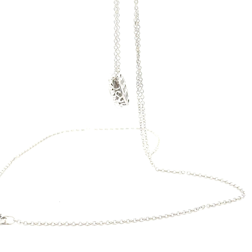 This stunning white gold pendant necklace features a delicate chain adorned with a beautifully crafted pendant. The intricate design sparkles with a cluster of shimmering diamonds making it the perfect accessory for any occasion. Elevate your style with this timeless piece that adds a touch of elegance to your outfit.