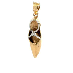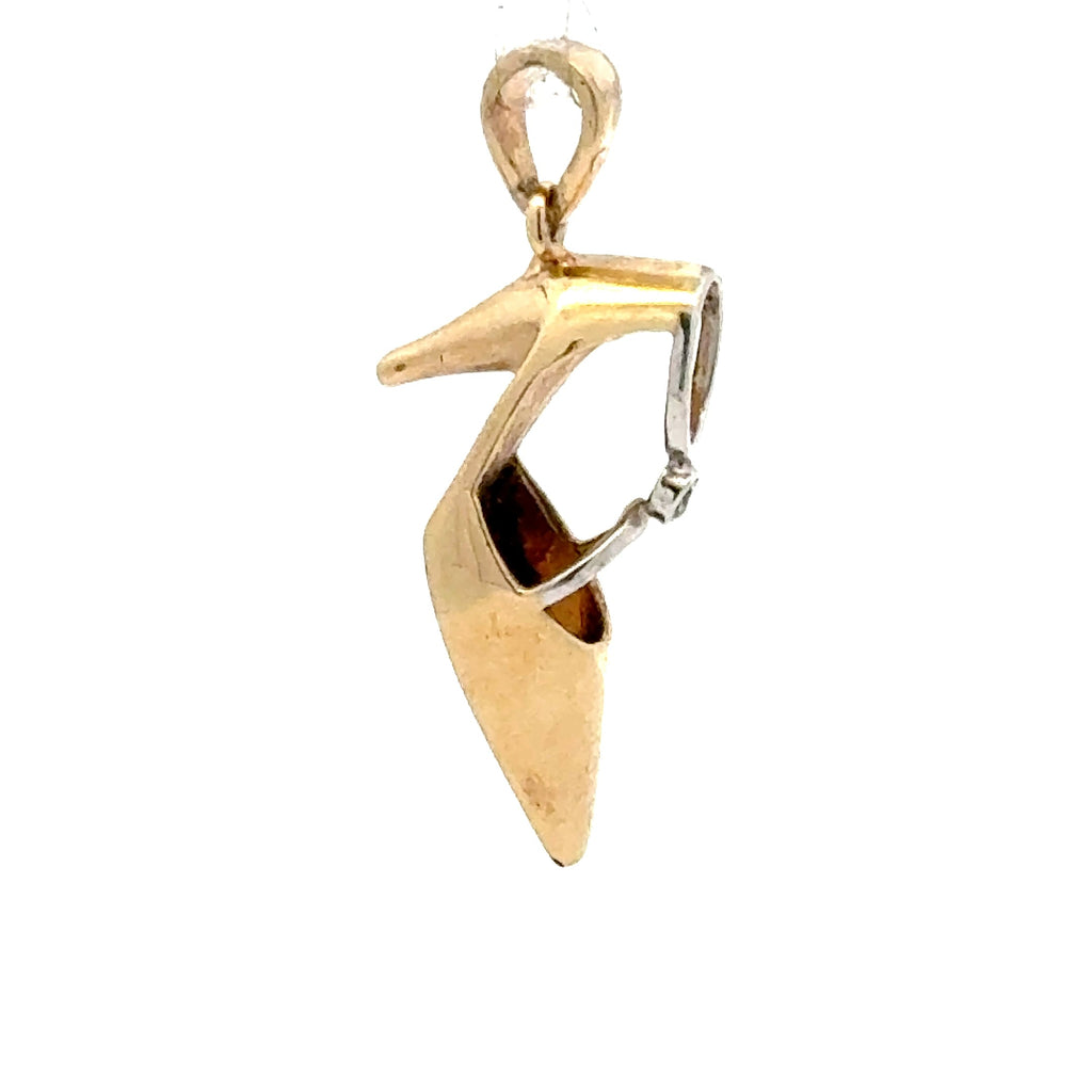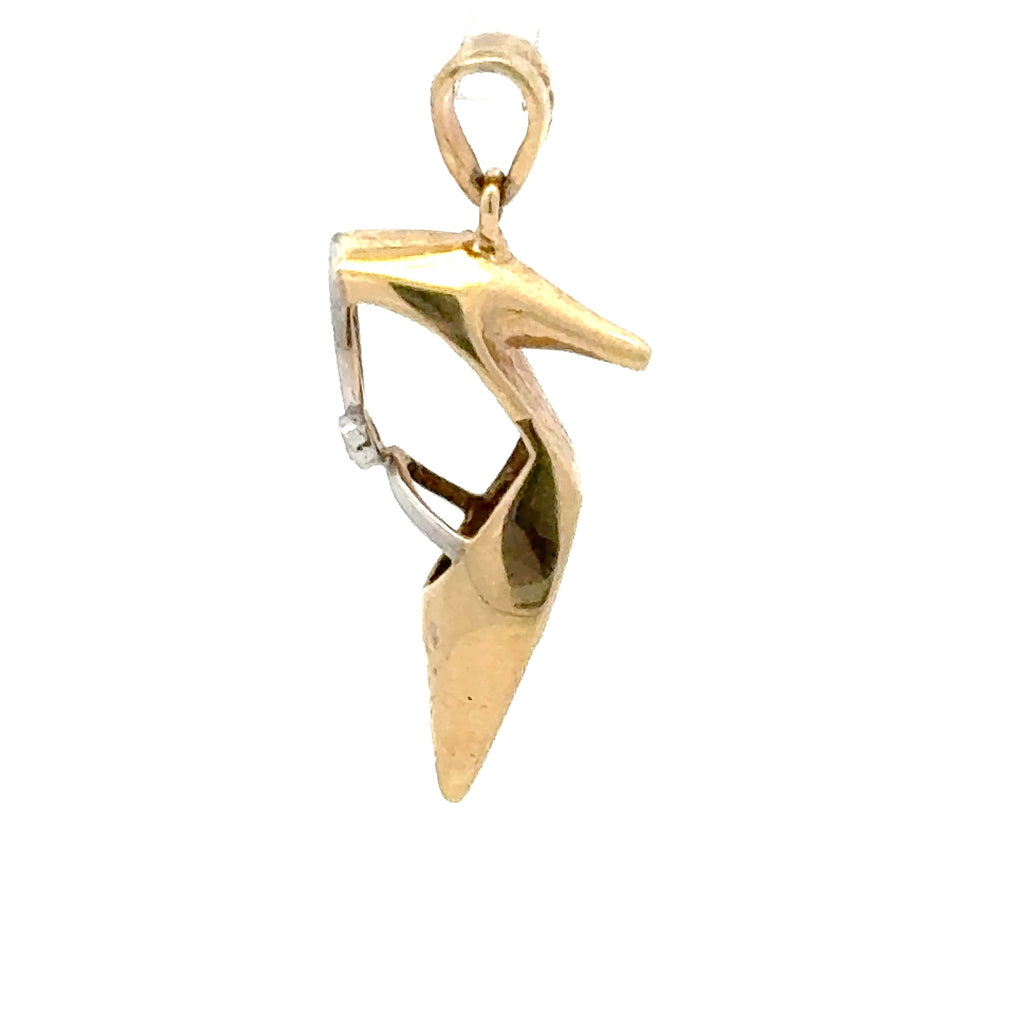 Elevate your style with this charming gold pendant. The pendant features a dazzling round brilliant cut stone, adding a touch of sophistication and sparkle to any ensemble. Its unique design and precious materials make it a treasured addition to your jewelry collection.