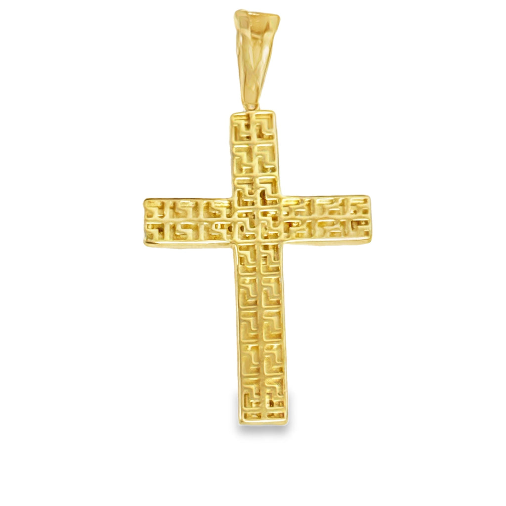 Greek Key Design Solid Yellow Gold Cross Pendant 10k