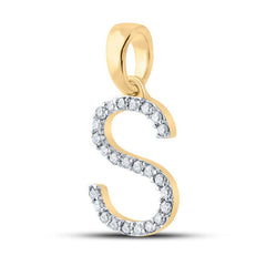 10kt Yellow Gold Womens Round Diamond S Initial Letter Pendant 1/5 Cttw