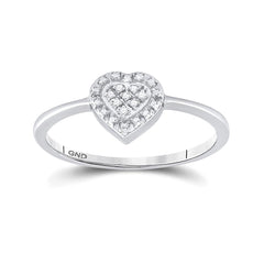 Sterling Silver Womens Round Diamond Heart Ring .03 Cttw