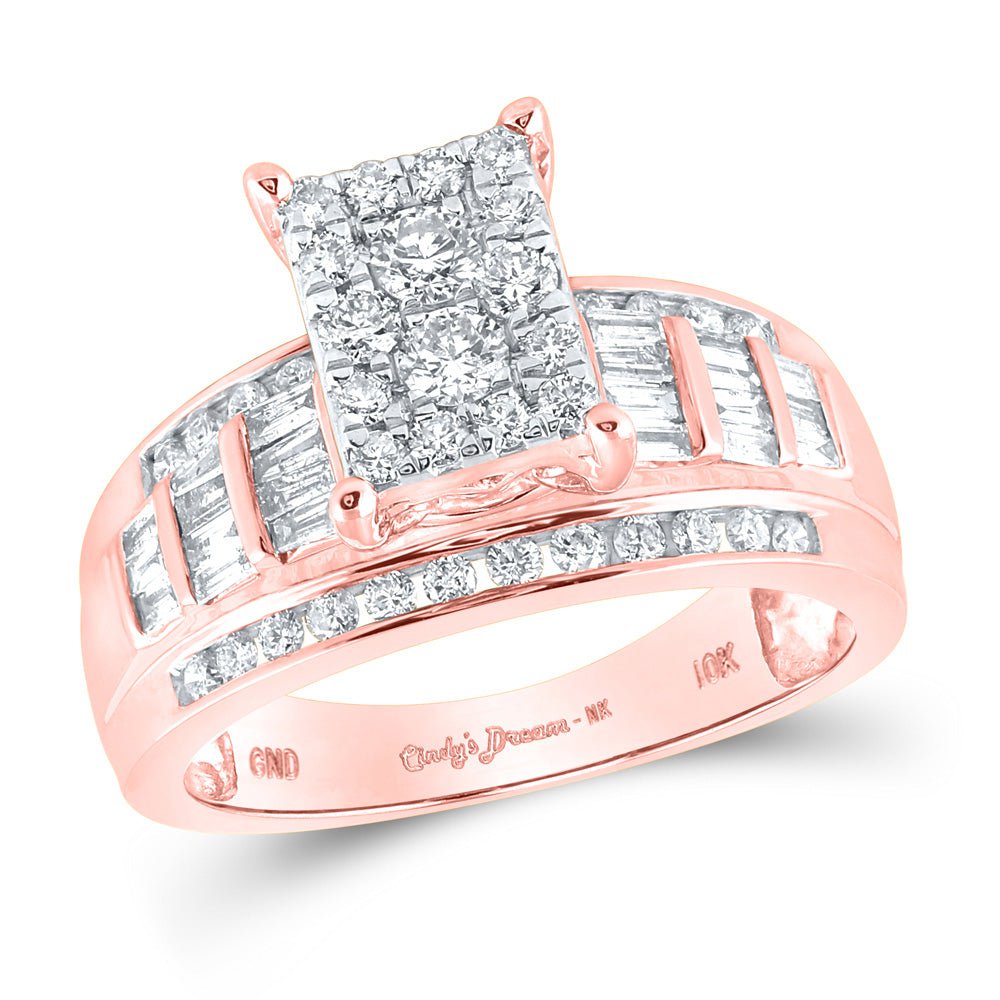 10kt Rose Gold Round Diamond Cluster Bridal Wedding Engagement Ring 7/8 Cttw