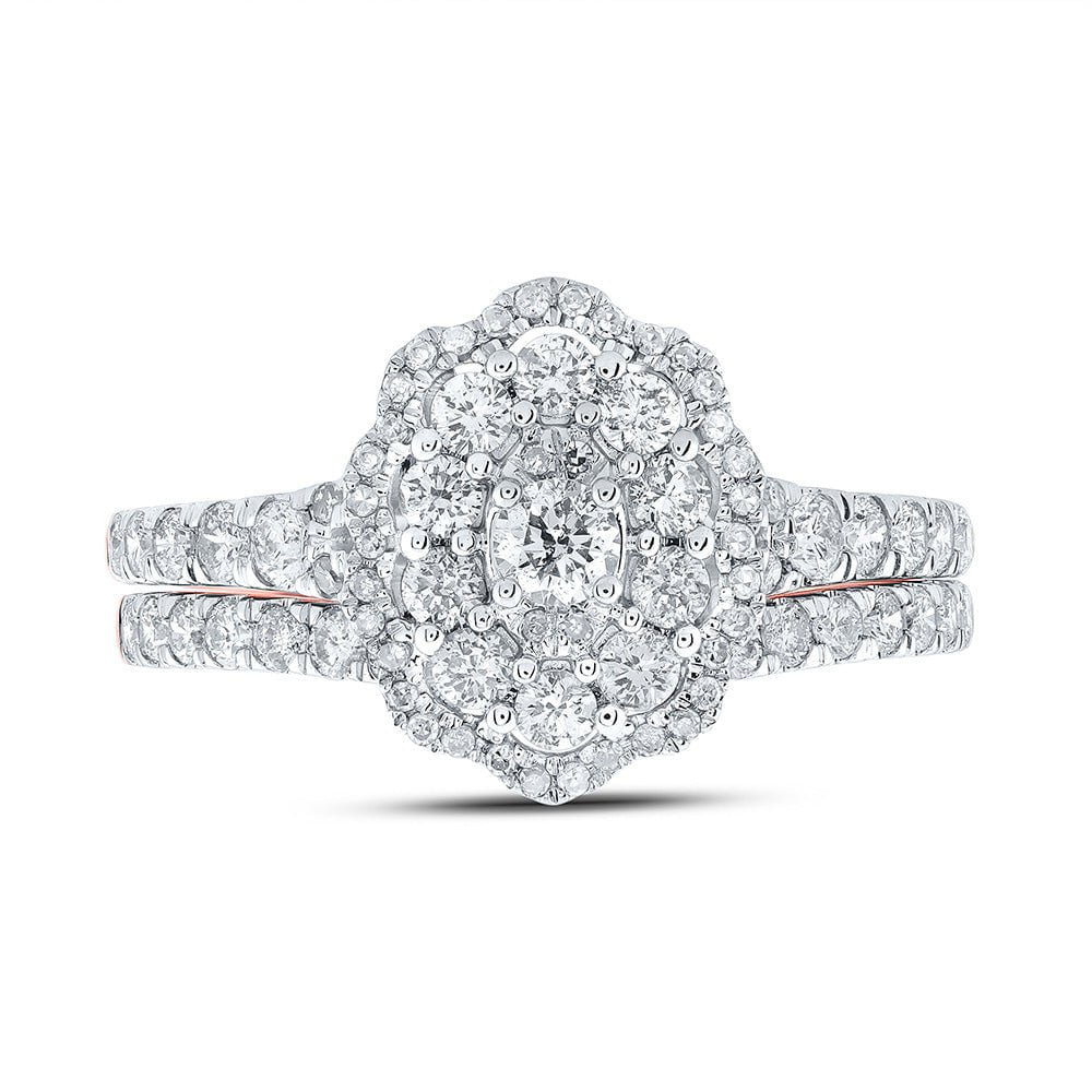10kt Rose Gold Round Diamond Halo Bridal Wedding Ring Band Set 1 Cttw