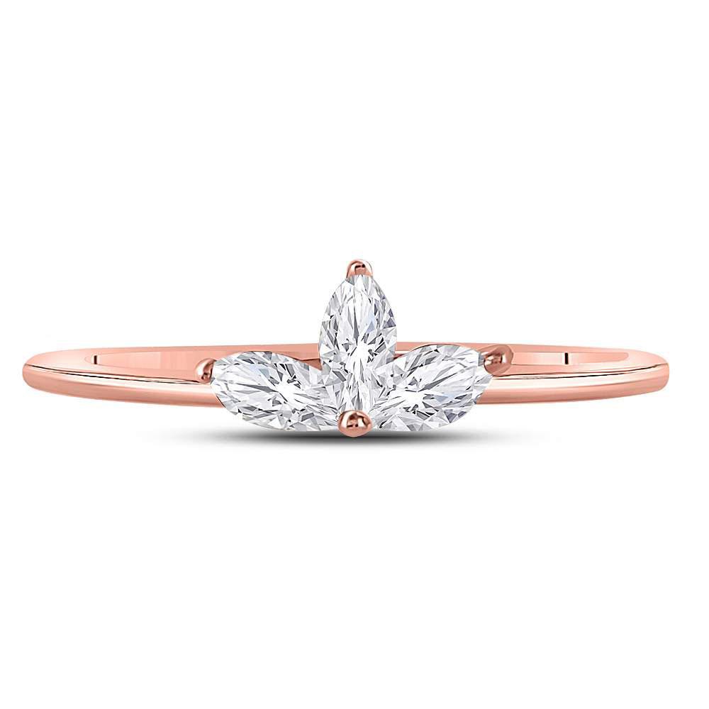 10kt Rose Gold Womens Marquise Diamond Stackable Band Ring 1/4 Cttw