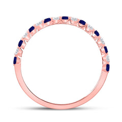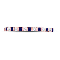 10kt Rose Gold Womens Princess Blue Sapphire Diamond Stackable Band Ring 3/8 Cttw