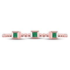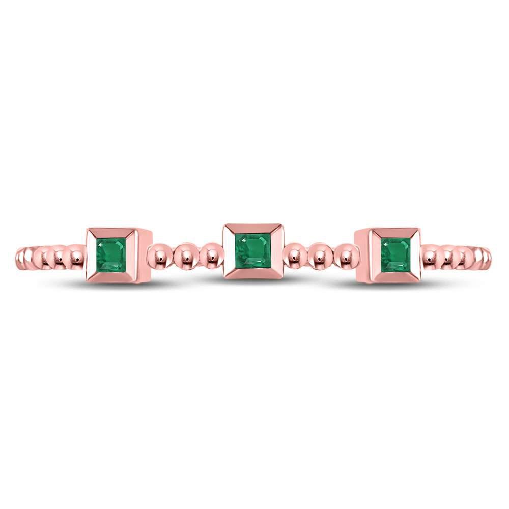 10kt Rose Gold Womens Princess Emerald Beaded 3-stone Stackable Band Ring .03 Cttw