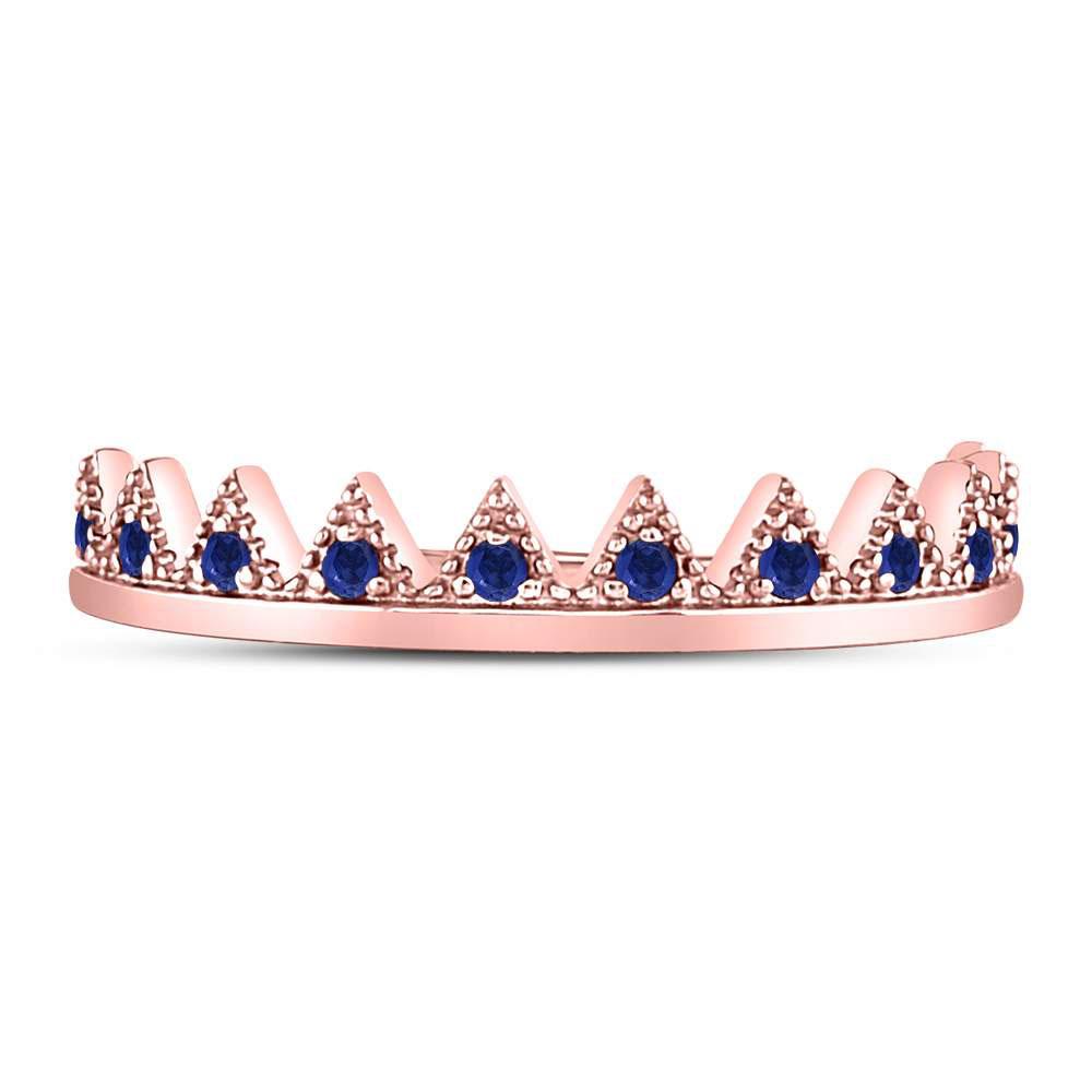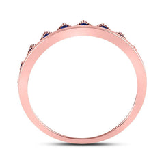 10kt Rose Gold Womens Round Blue Sapphire Chevron Stackable Band Ring 1/10 Cttw