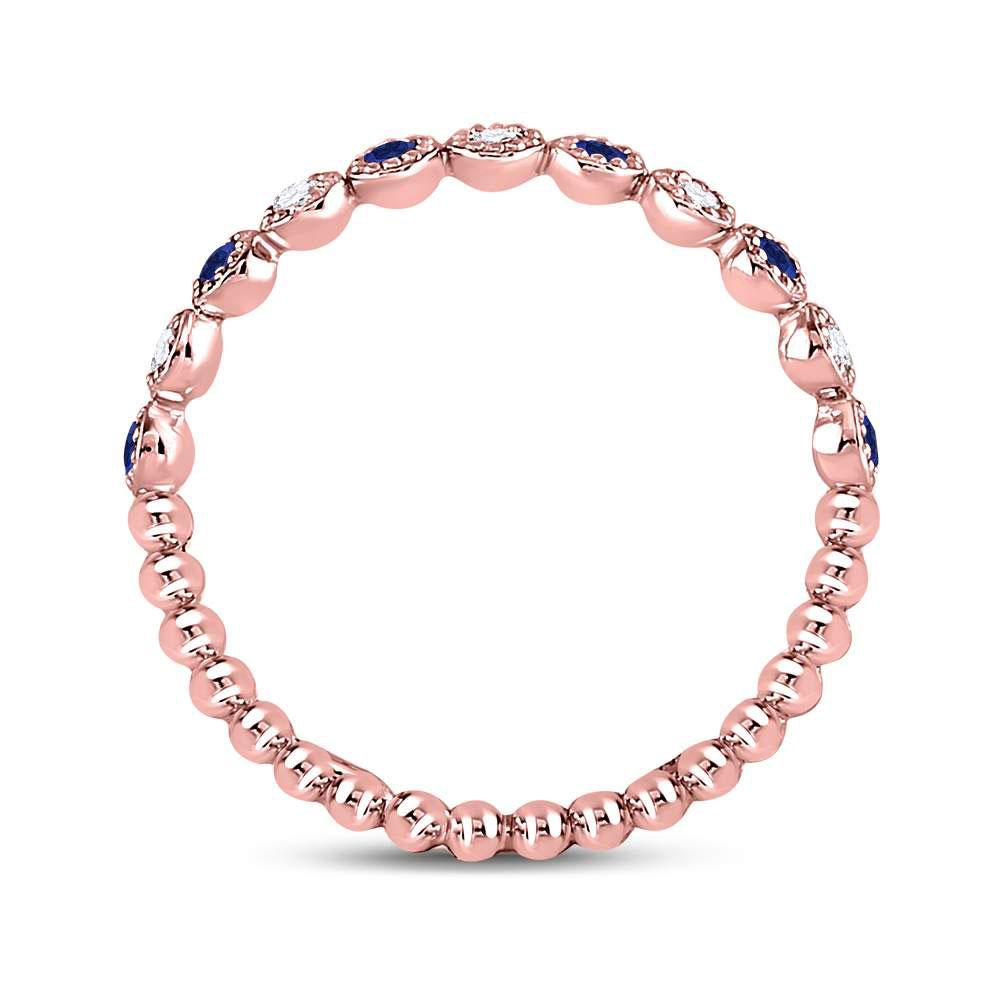 10kt Rose Gold Womens Round Blue Sapphire Diamond Beaded Dot Stackable Band Ring 1/6 Cttw