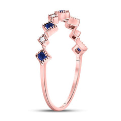 10kt Rose Gold Womens Round Blue Sapphire Diamond Square Stackable Band Ring 1/5 Cttw