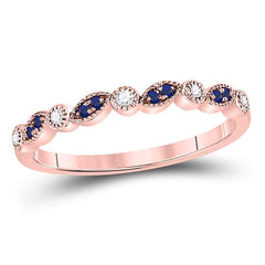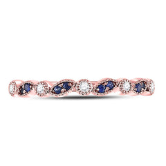 10kt Rose Gold Womens Round Blue Sapphire Diamond Stackable Band Ring 1/10 Cttw