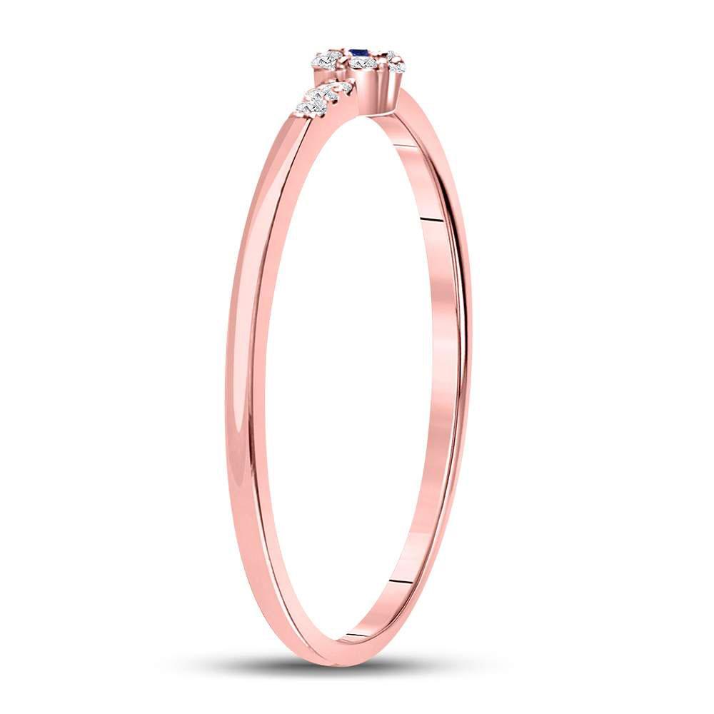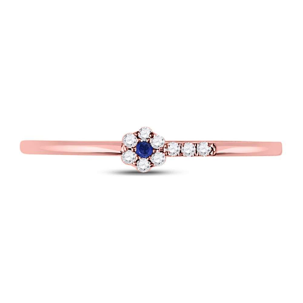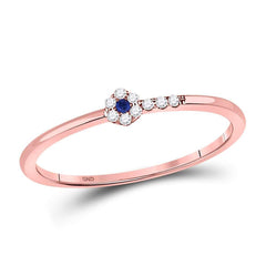 10kt Rose Gold Womens Round Blue Sapphire Diamond Stackable Band Ring 1/12 Cttw