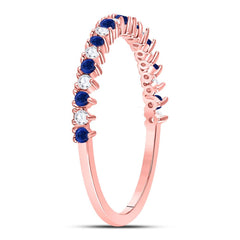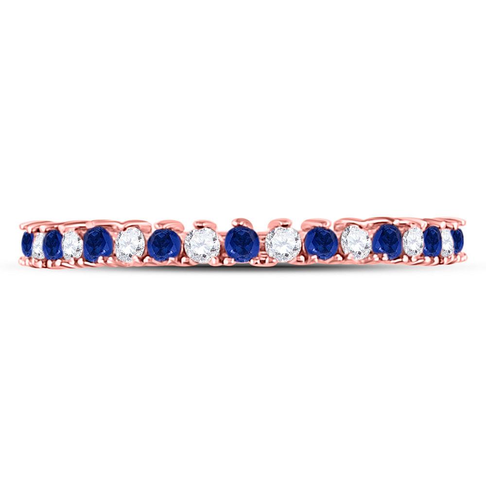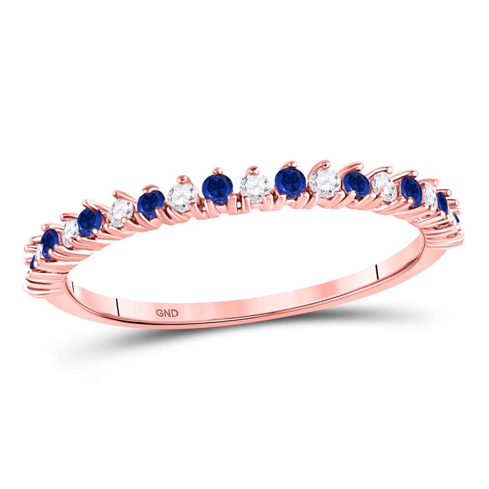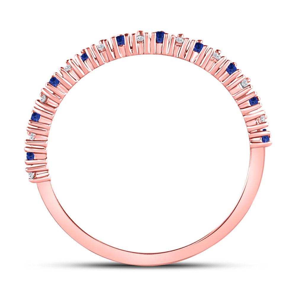 10kt Rose Gold Womens Round Blue Sapphire Diamond Stackable Band Ring 1/5 Cttw