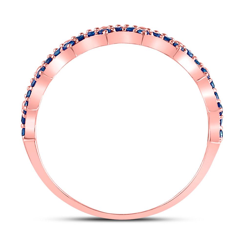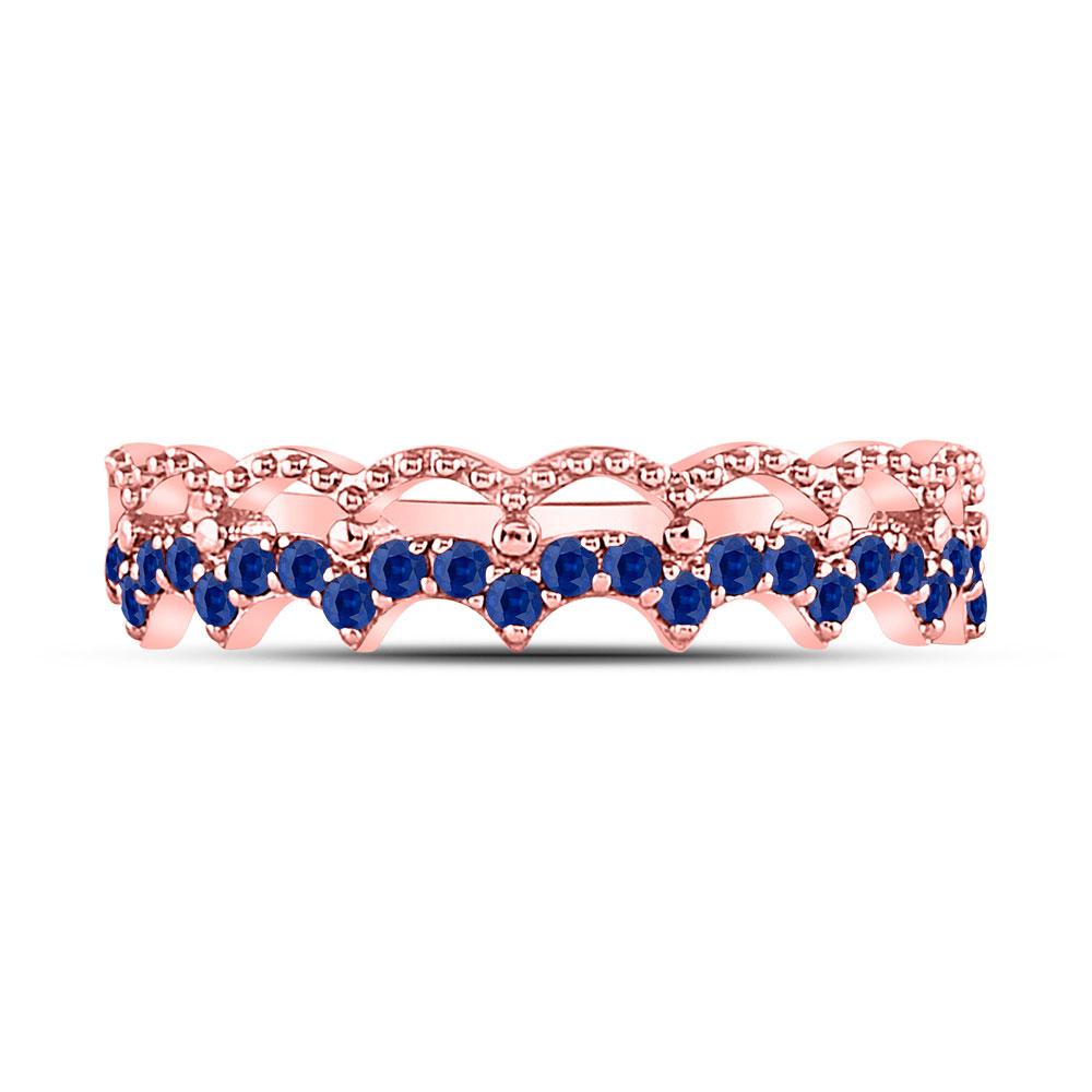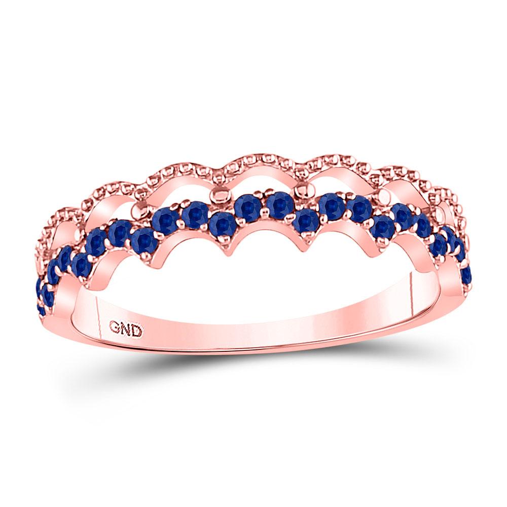 10kt Rose Gold Womens Round Blue Sapphire Scalloped Stackable Band Ring 1/4 Cttw