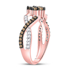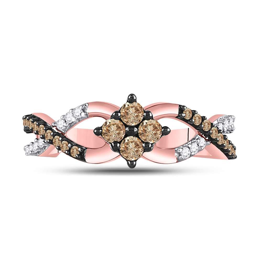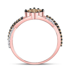 10kt Rose Gold Womens Round Brown Diamond Cluster Twist Ring 1/2 Cttw