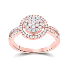 10kt Rose Gold Womens Round Diamond Circle Cluster Ring 1/2 Cttw