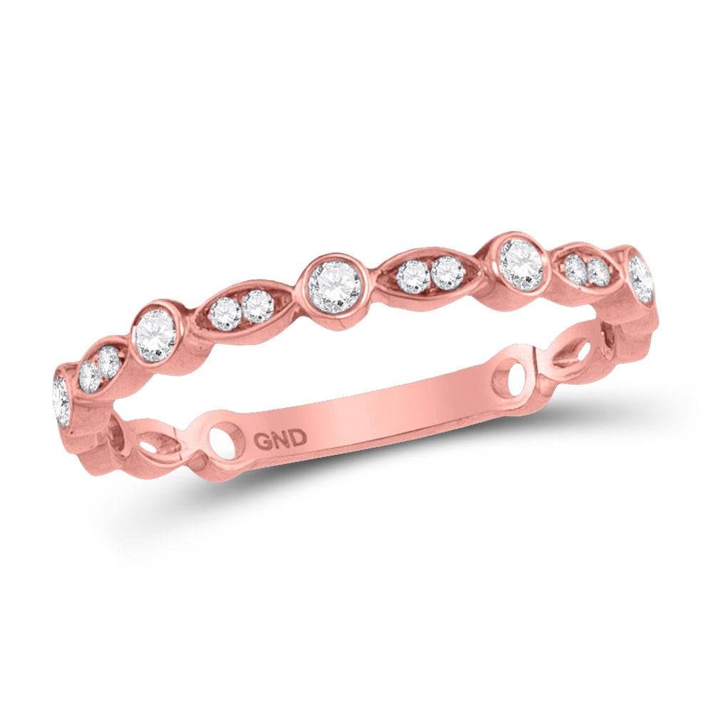 10kt Rose Gold Womens Round Diamond Classic Stackable Band Ring 1/6 Cttw