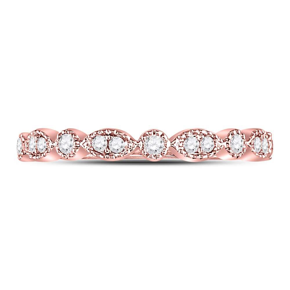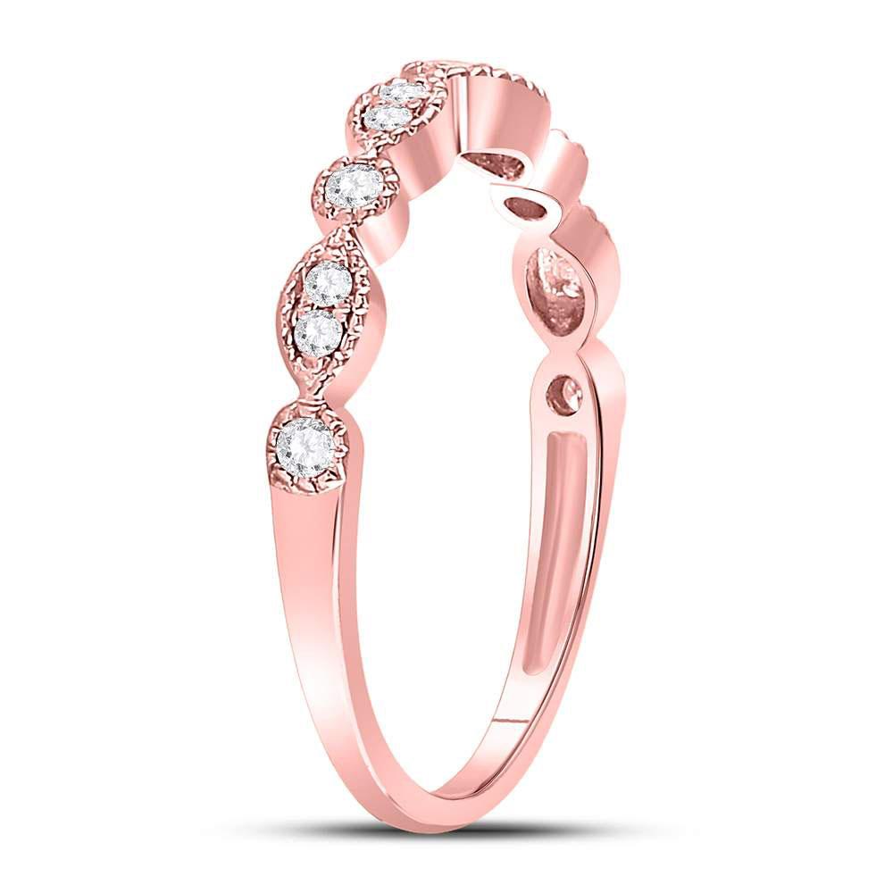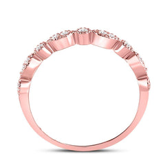 10kt Rose Gold Womens Round Diamond Marquise Dot Stackable Band Ring 1/6 Cttw