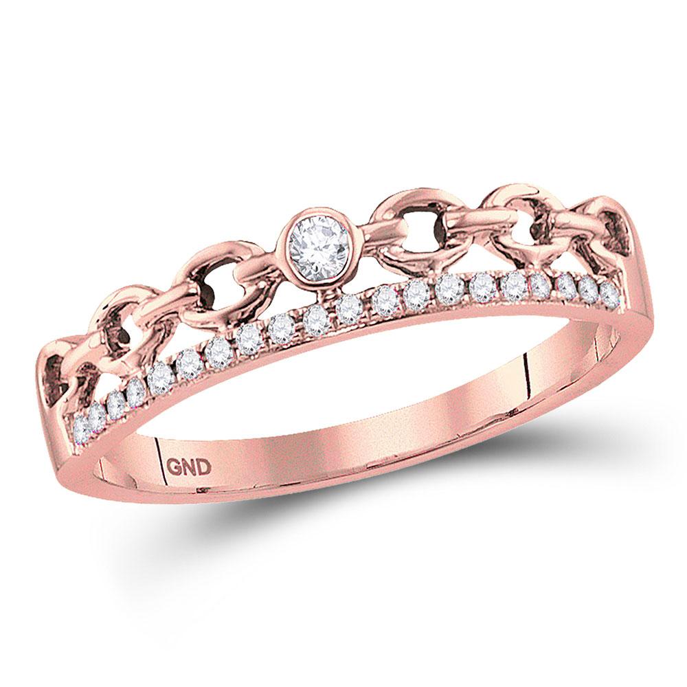 10kt Rose Gold Womens Round Diamond Rolo Link Stackable Band Ring 1/12 Cttw