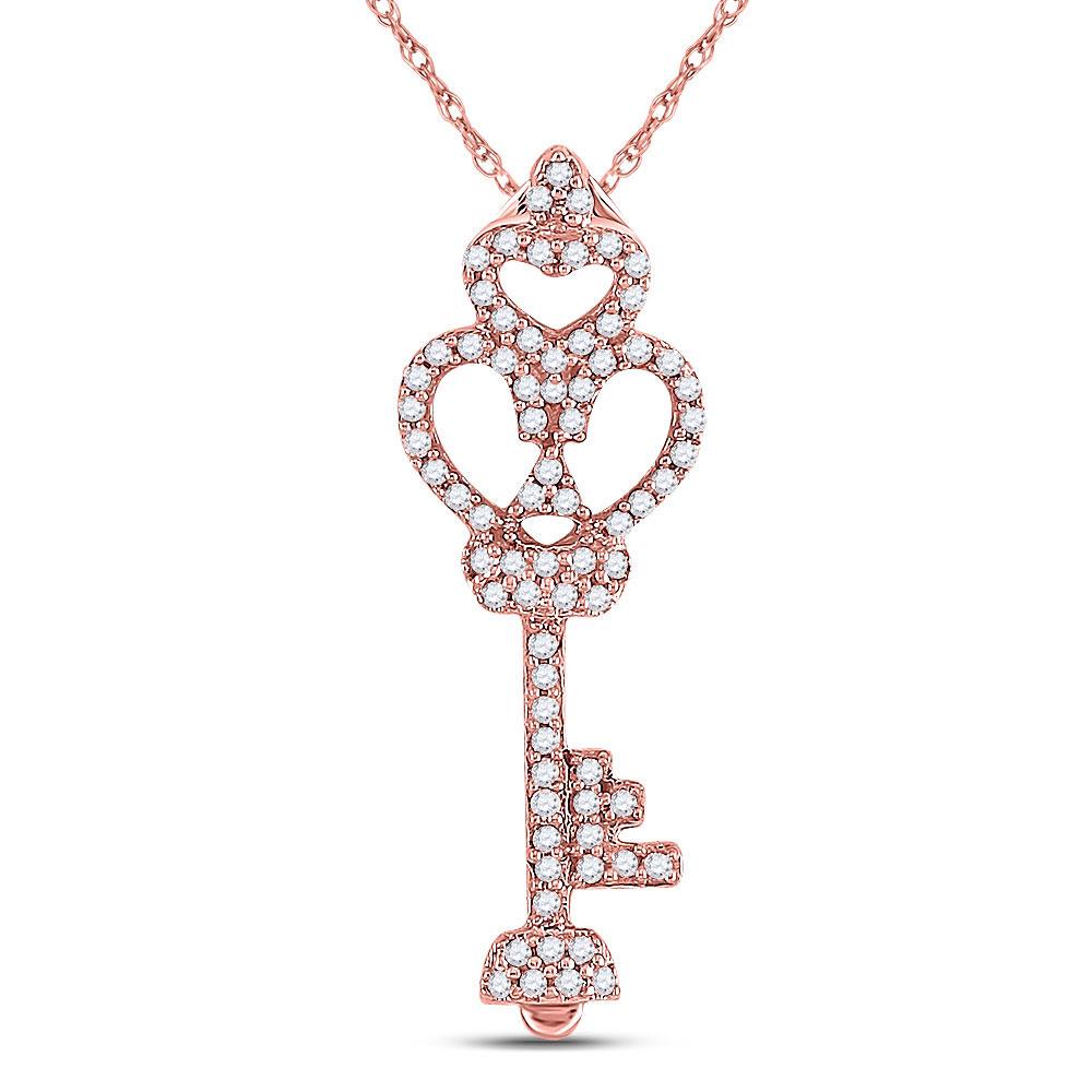 10kt Rose Gold Womens Round Diamond Trefoil Heart Key Pendant 1/5 Cttw