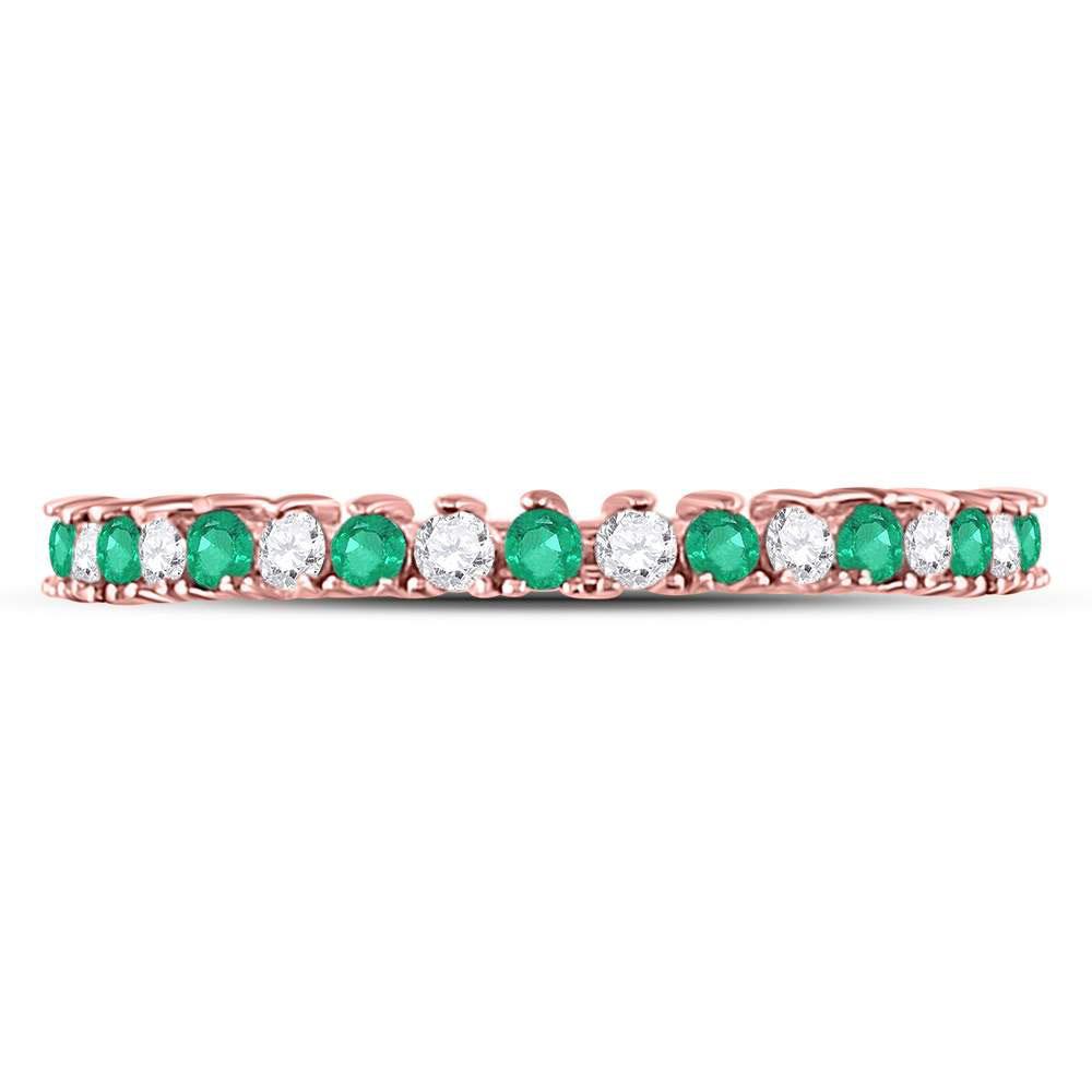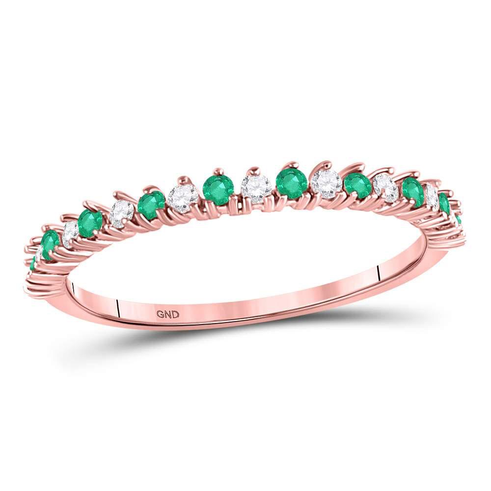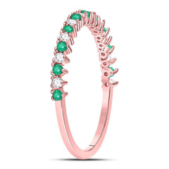 10kt Rose Gold Womens Round Emerald Diamond Stackable Band Ring 1/5 Cttw