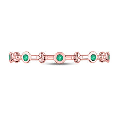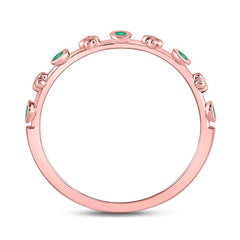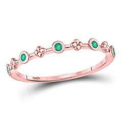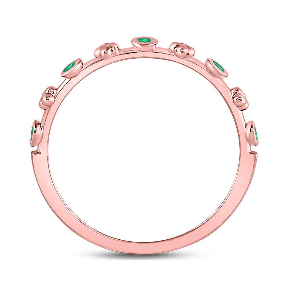 10kt Rose Gold Womens Round Emerald Dot Flower Stackable Band Ring 1/12 Cttw