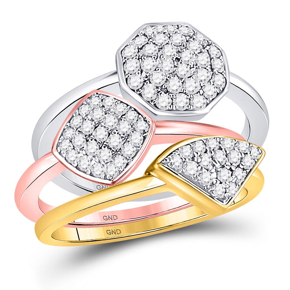 10kt Tri-Tone Gold Womens Round Diamond Stackable Ring 3-Piece Set 3/4 Cttw