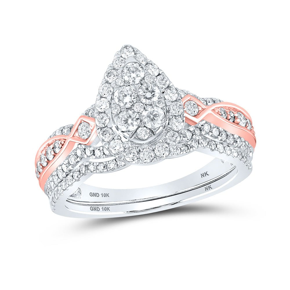 10kt Two-tone Gold Round Diamond Teardrop Bridal Wedding Ring Band Set 1 Cttw