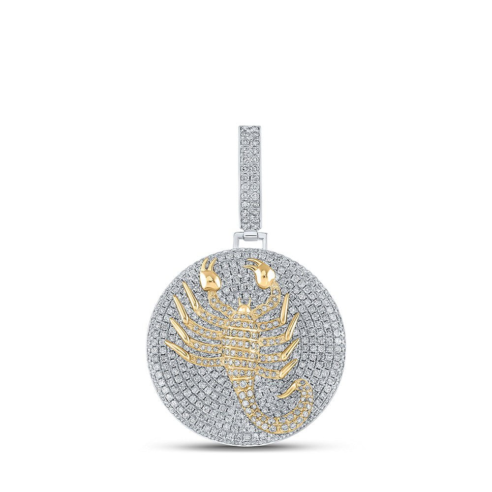 10kt White Gold Mens Round Diamond Scorpion Circle Charm Pendant 7-1/3 Cttw
