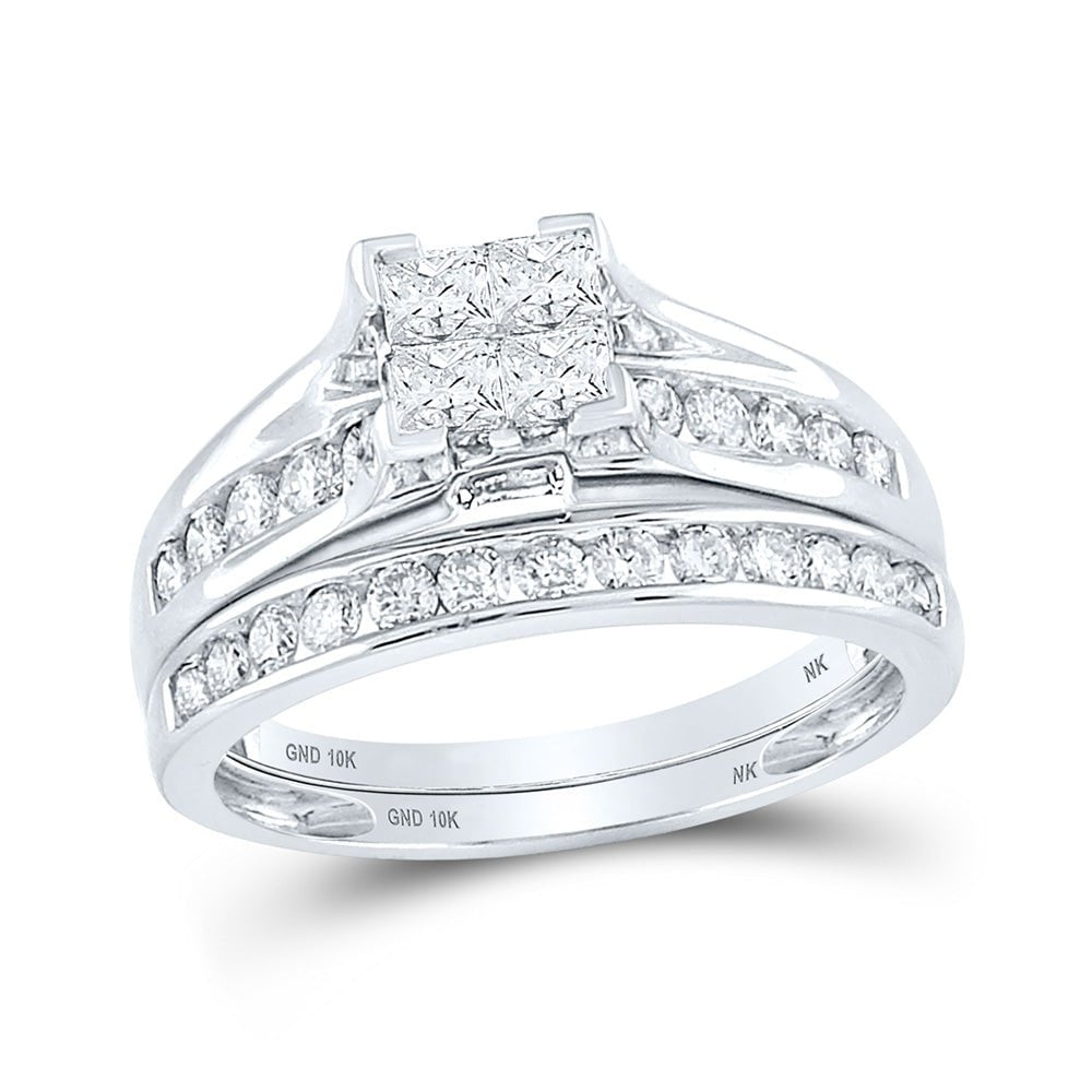 10kt White Gold Princess Diamond Bridal Wedding Ring Band Set 1 Cttw