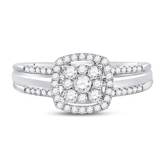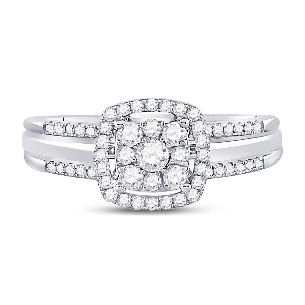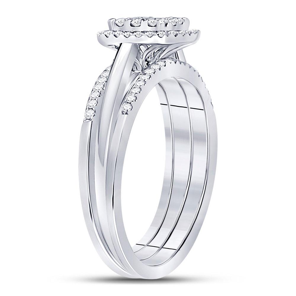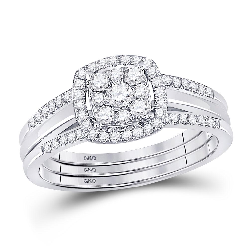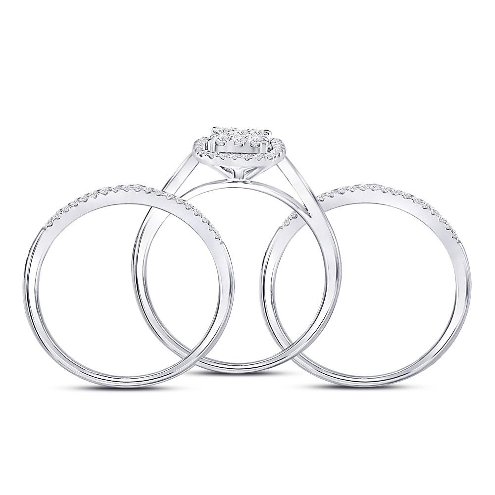 10kt White Gold Round Diamond 3-Piece Bridal Wedding Ring Set 1/2 Cttw
