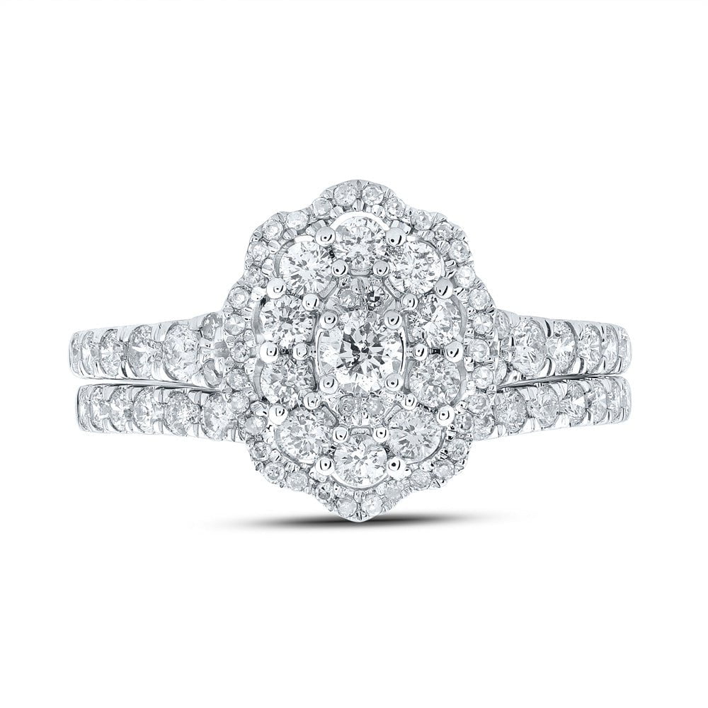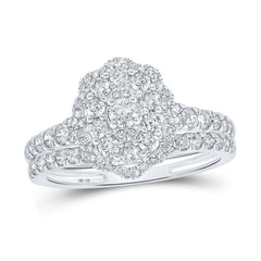 10kt White Gold Round Diamond Bridal Wedding Ring Band Set 1 Cttw