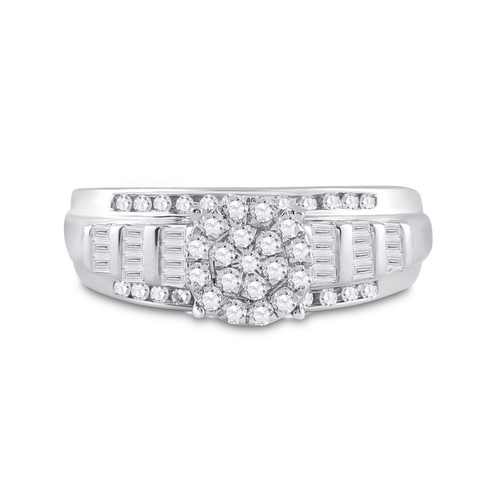 10kt White Gold Round Diamond Cluster Bridal Wedding Engagement Ring 1/2 Cttw