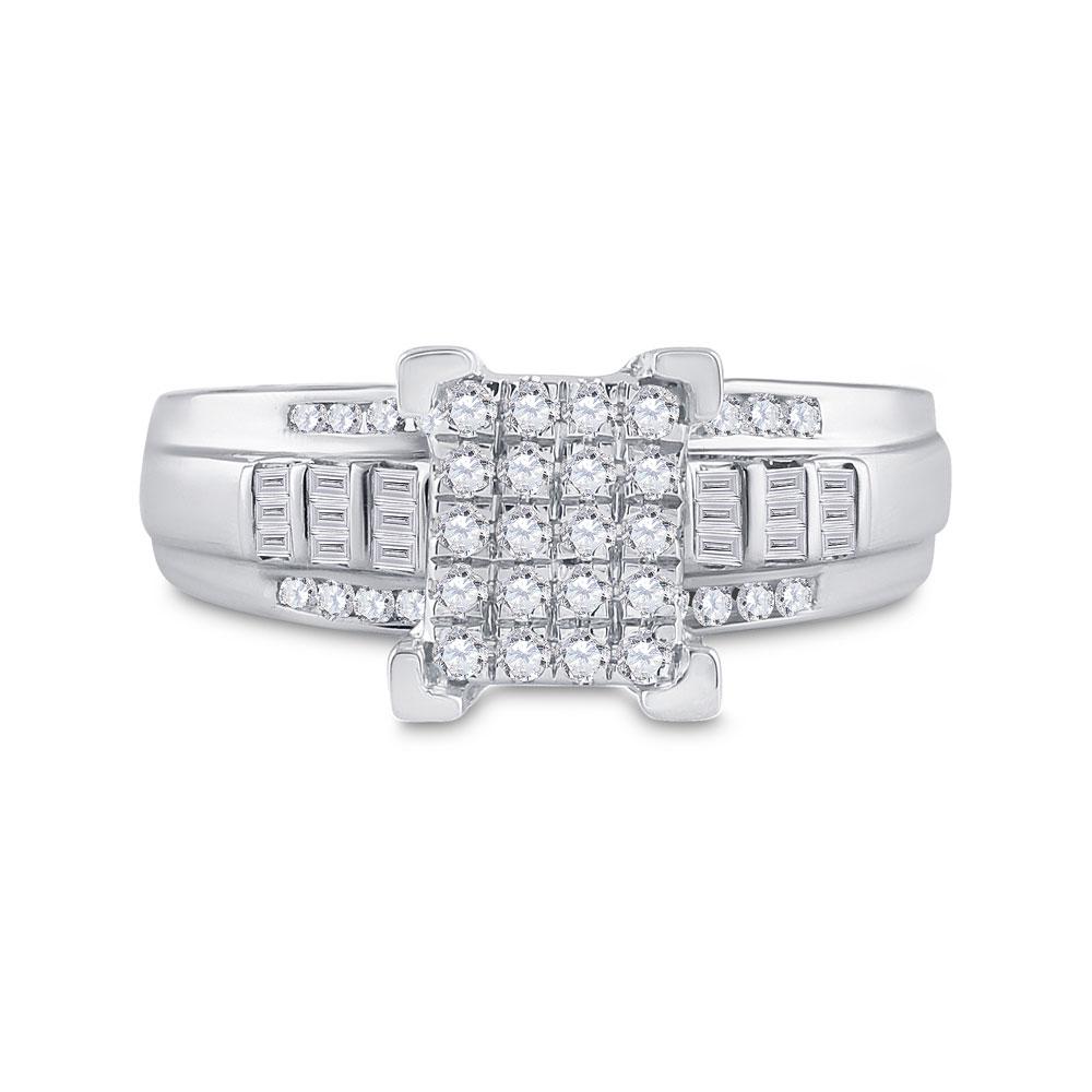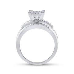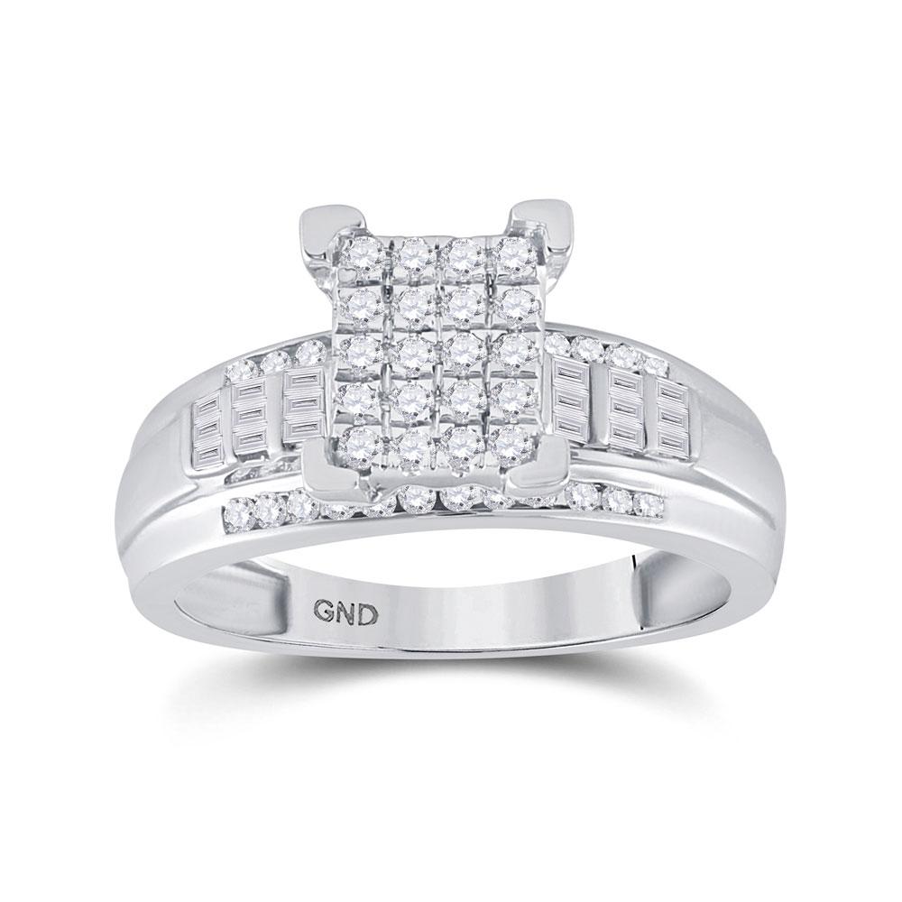 10kt White Gold Round Diamond Cluster Bridal Wedding Engagement Ring 1/2 Cttw