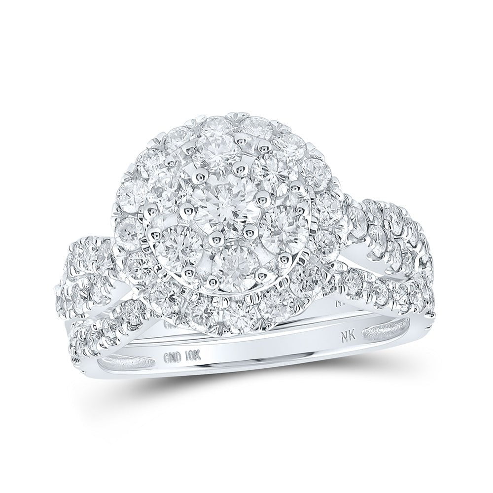 10kt White Gold Round Diamond Halo Bridal Wedding Ring Band Set 2 Cttw