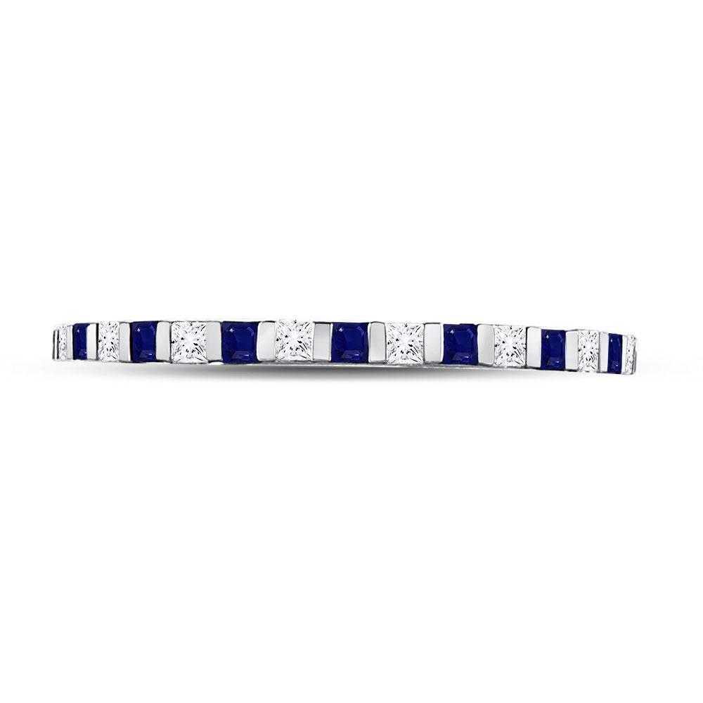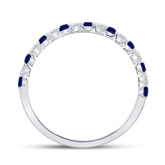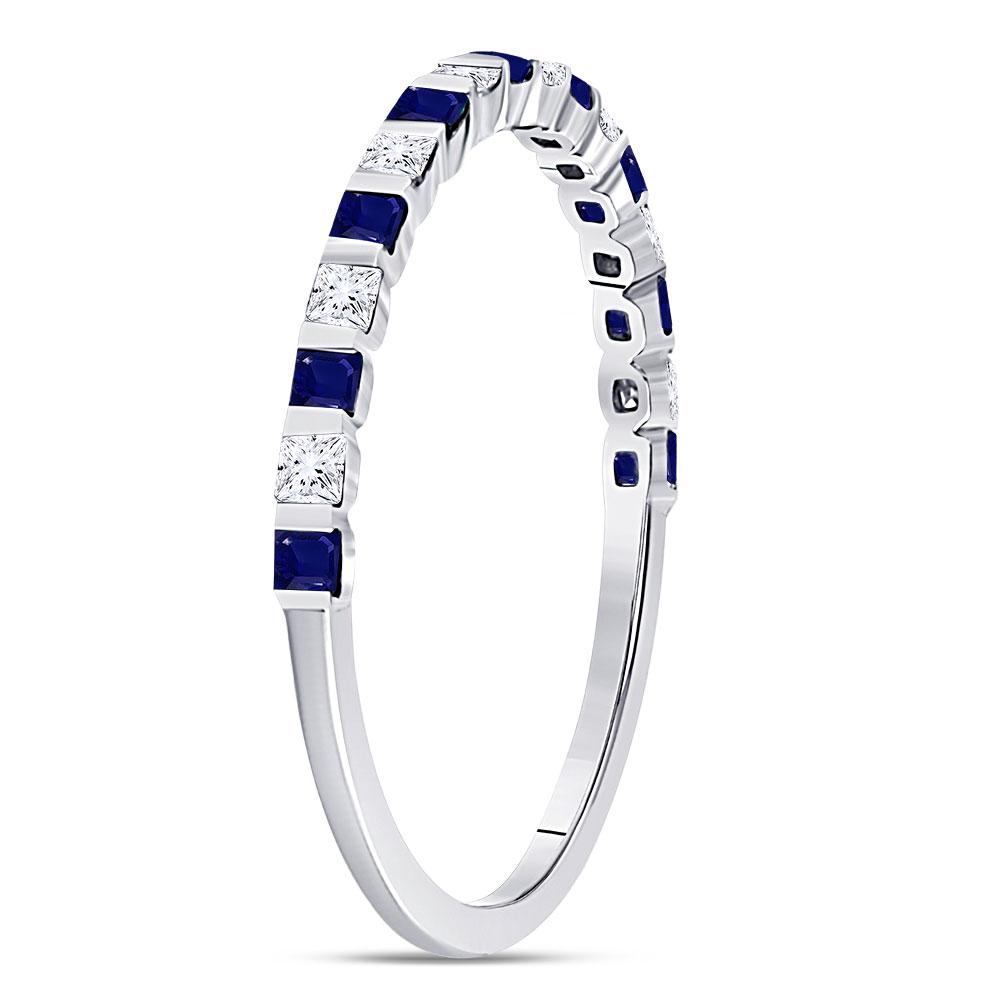 10kt White Gold Womens Princess Blue Sapphire Diamond Stackable Band Ring 3/8 Cttw