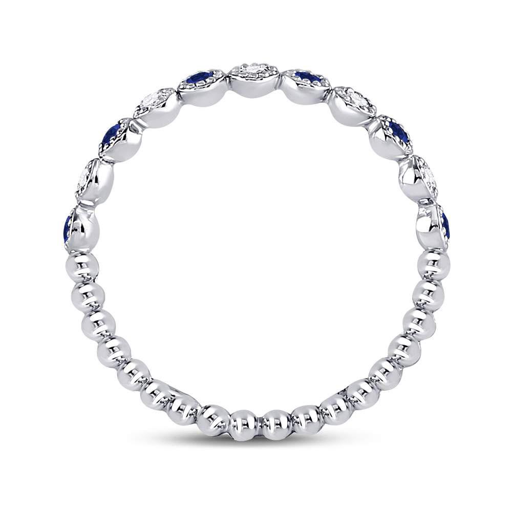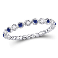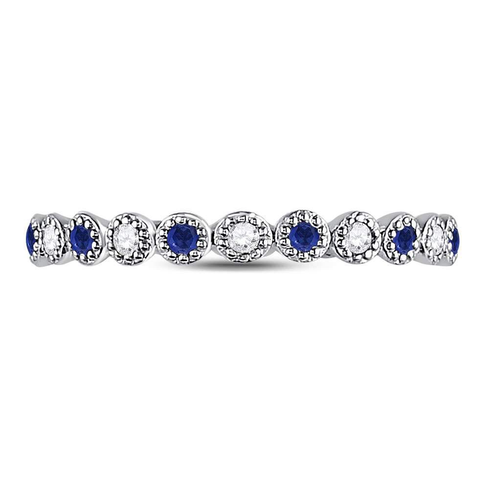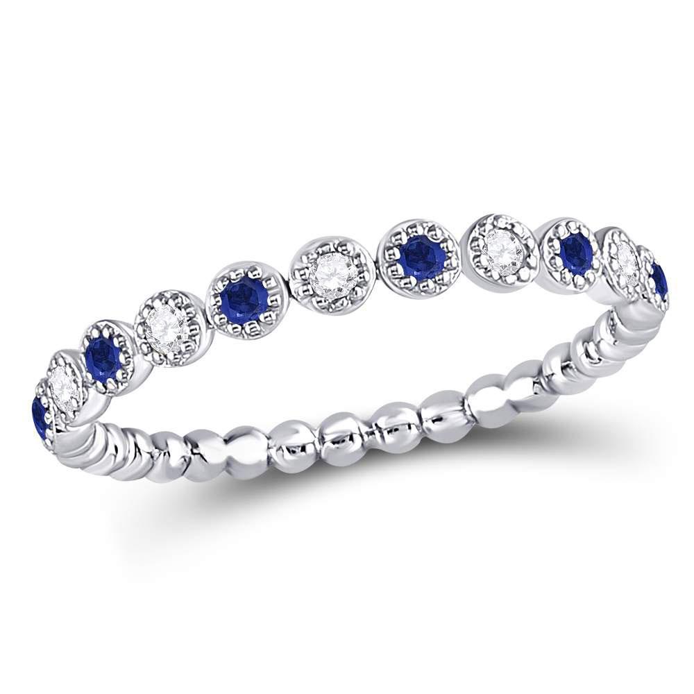 10kt White Gold Womens Round Blue Sapphire Diamond Beaded Dot Stackable Band Ring 1/6 Cttw
