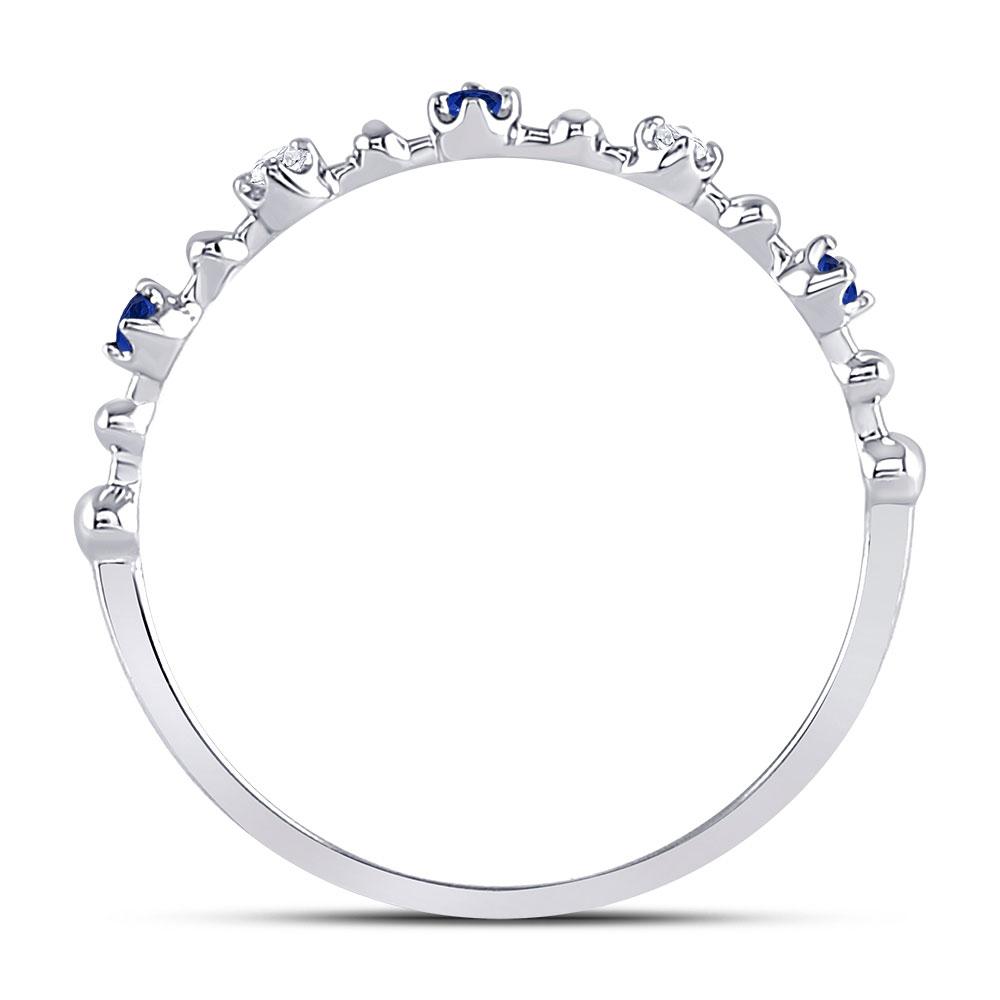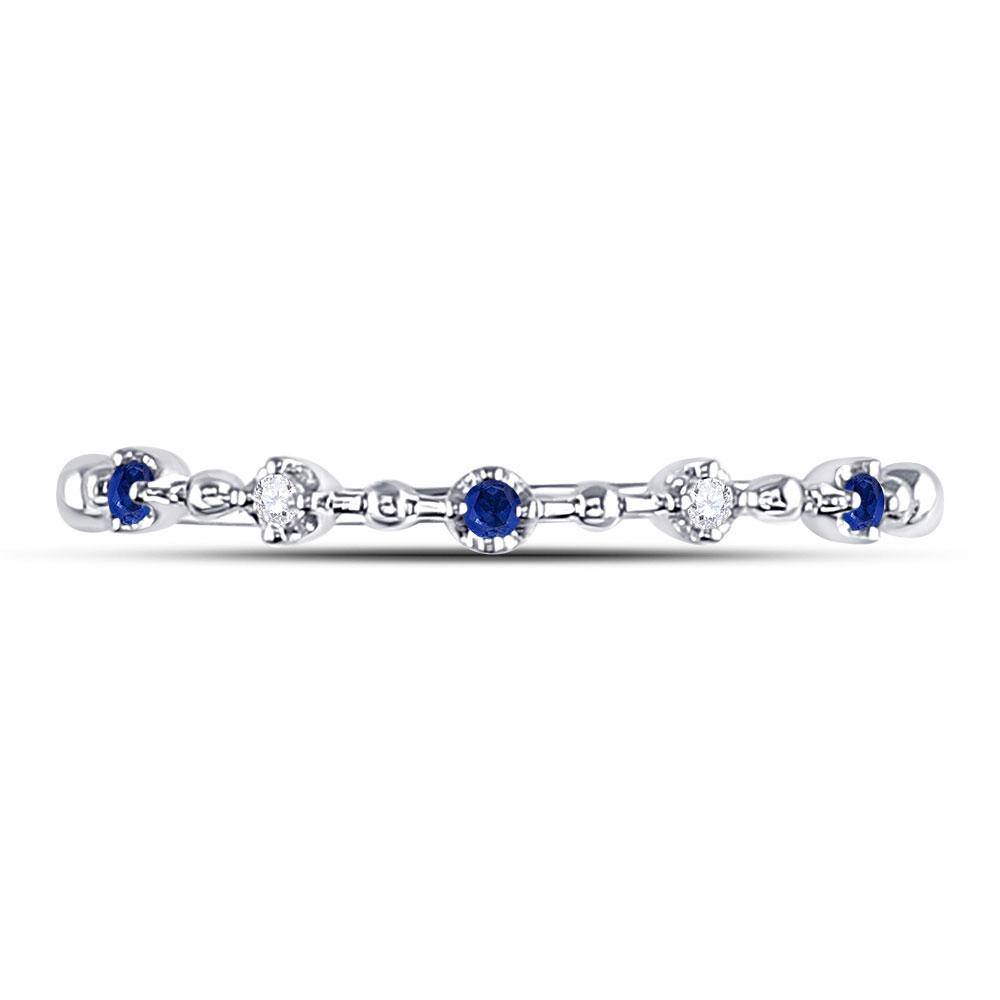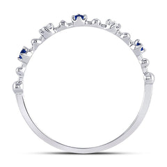 10kt White Gold Womens Round Blue Sapphire Diamond Beaded Stackable Band Ring 1/20 Cttw
