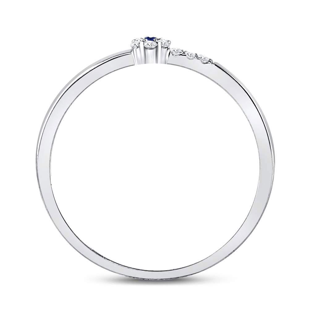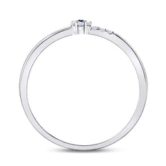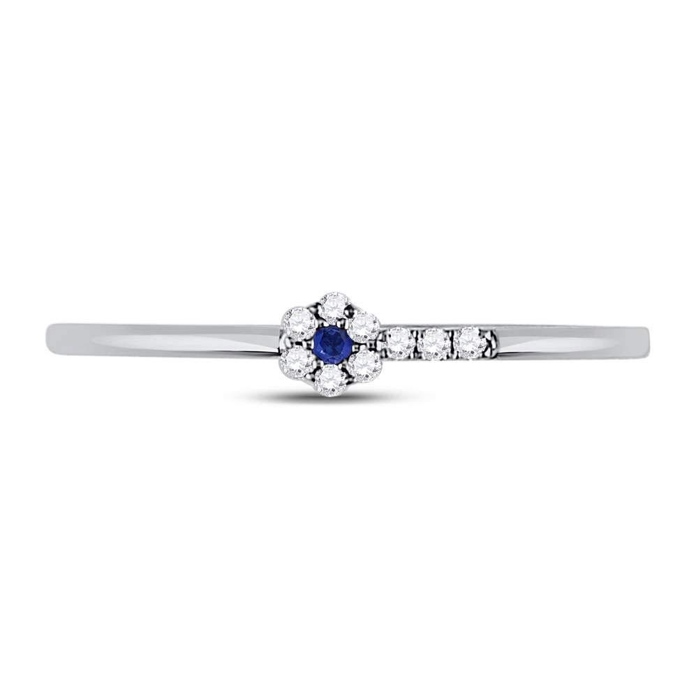 10kt White Gold Womens Round Blue Sapphire Diamond Stackable Band Ring 1/12 Cttw
