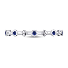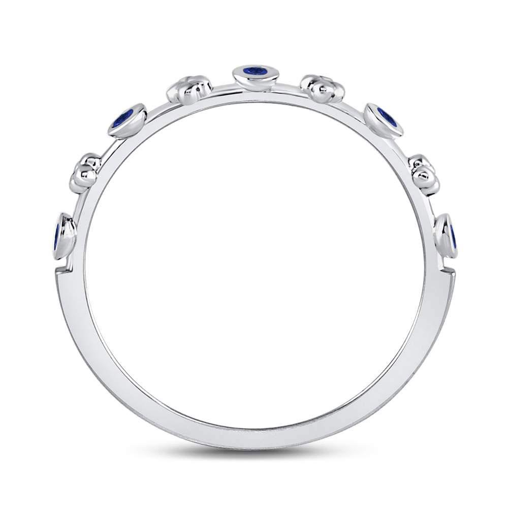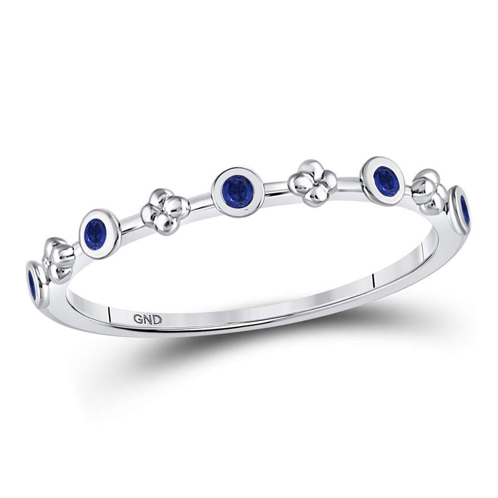 10kt White Gold Womens Round Blue Sapphire Dot Flower Stackable Band Ring 1/12 Cttw