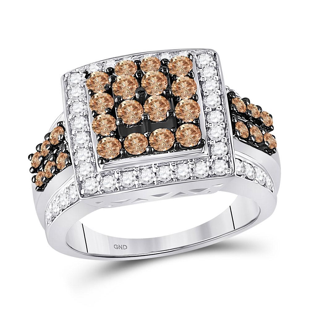 10kt White Gold Womens Round Brown Diamond Square Cluster Ring 1-1/2 Cttw