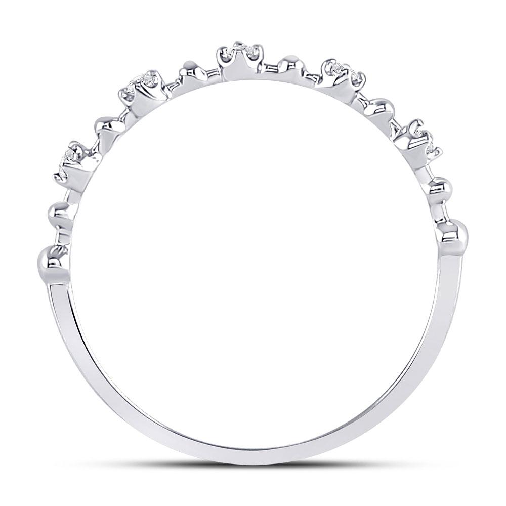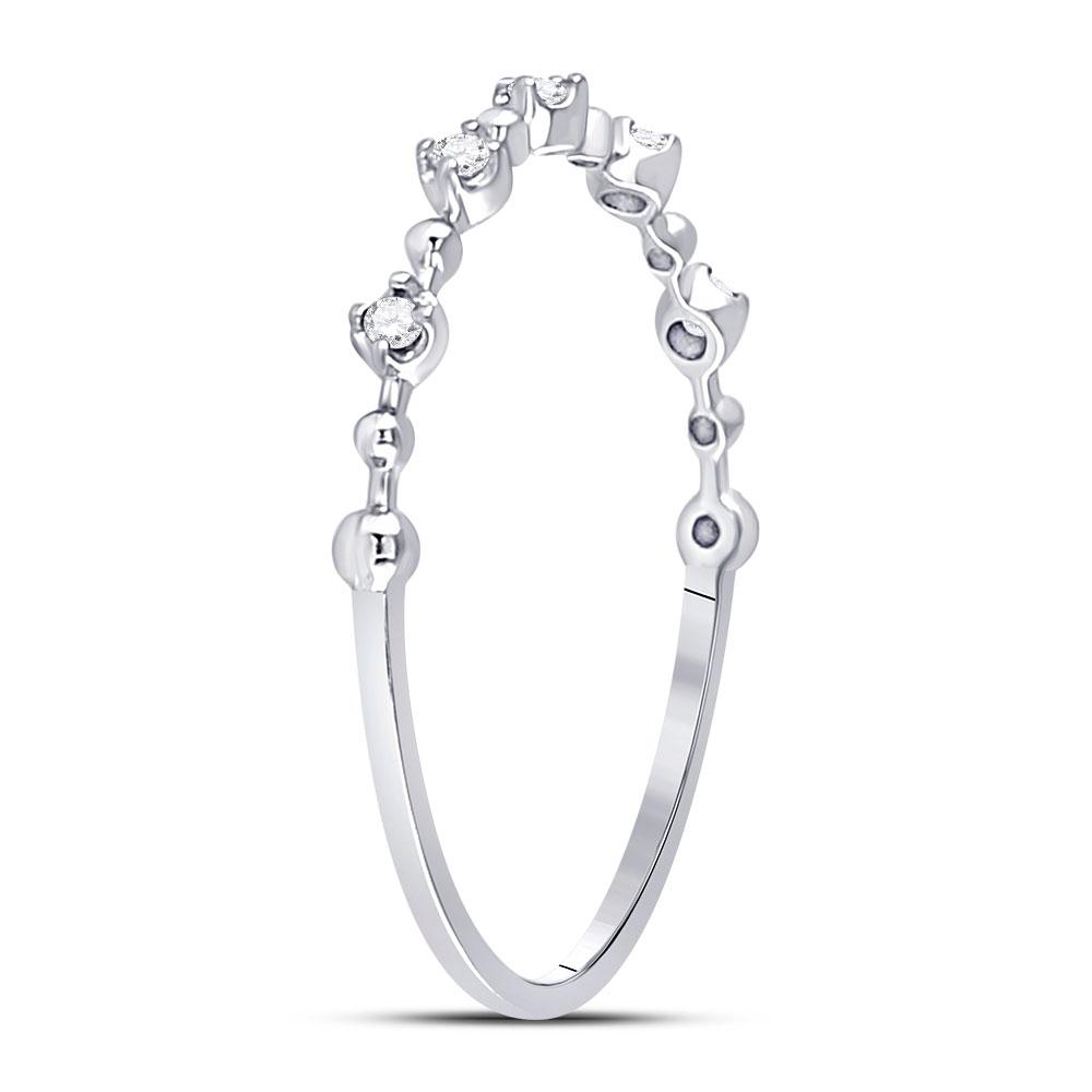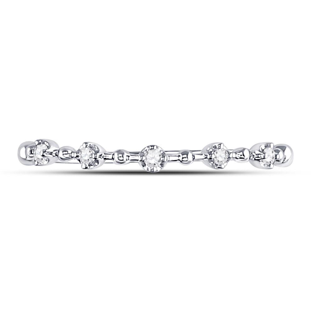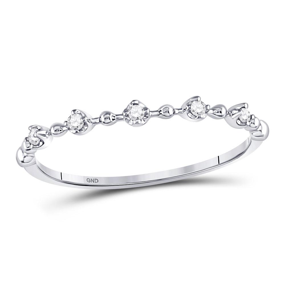 10kt White Gold Womens Round Diamond Bead Dot Stackable Ring 1/20 Cttw