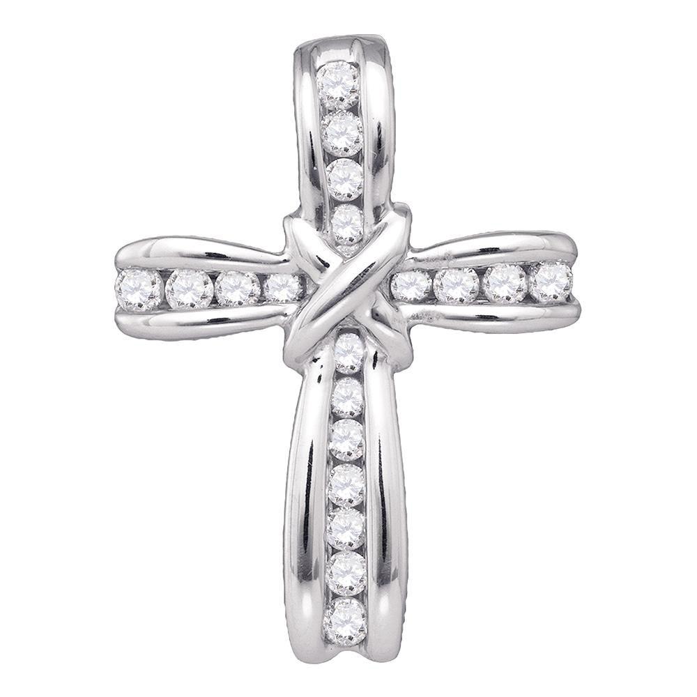 10kt White Gold Womens Round Diamond Bound Cross Pendant 1/5 Cttw