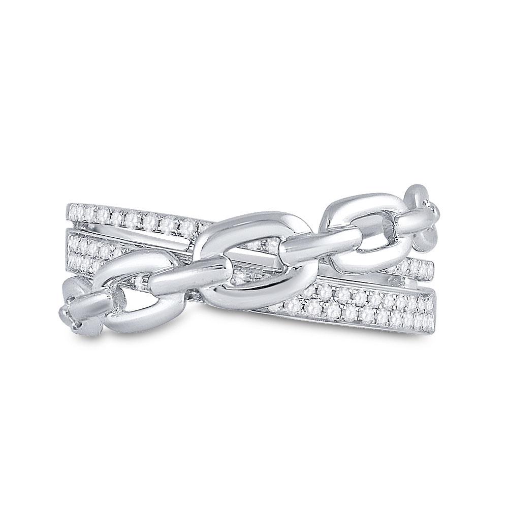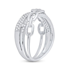 10kt White Gold Womens Round Diamond Chain Link Crossover Band Ring 1/5 Cttw