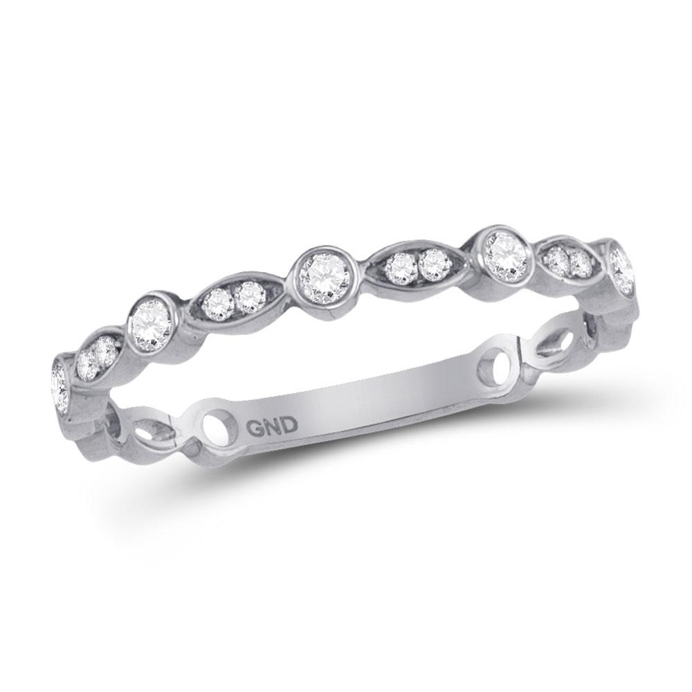 10kt White Gold Womens Round Diamond Classic Stackable Band Ring 1/6 Cttw