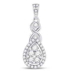 10kt White Gold Womens Round Diamond Cluster Pendant 1/2 Cttw