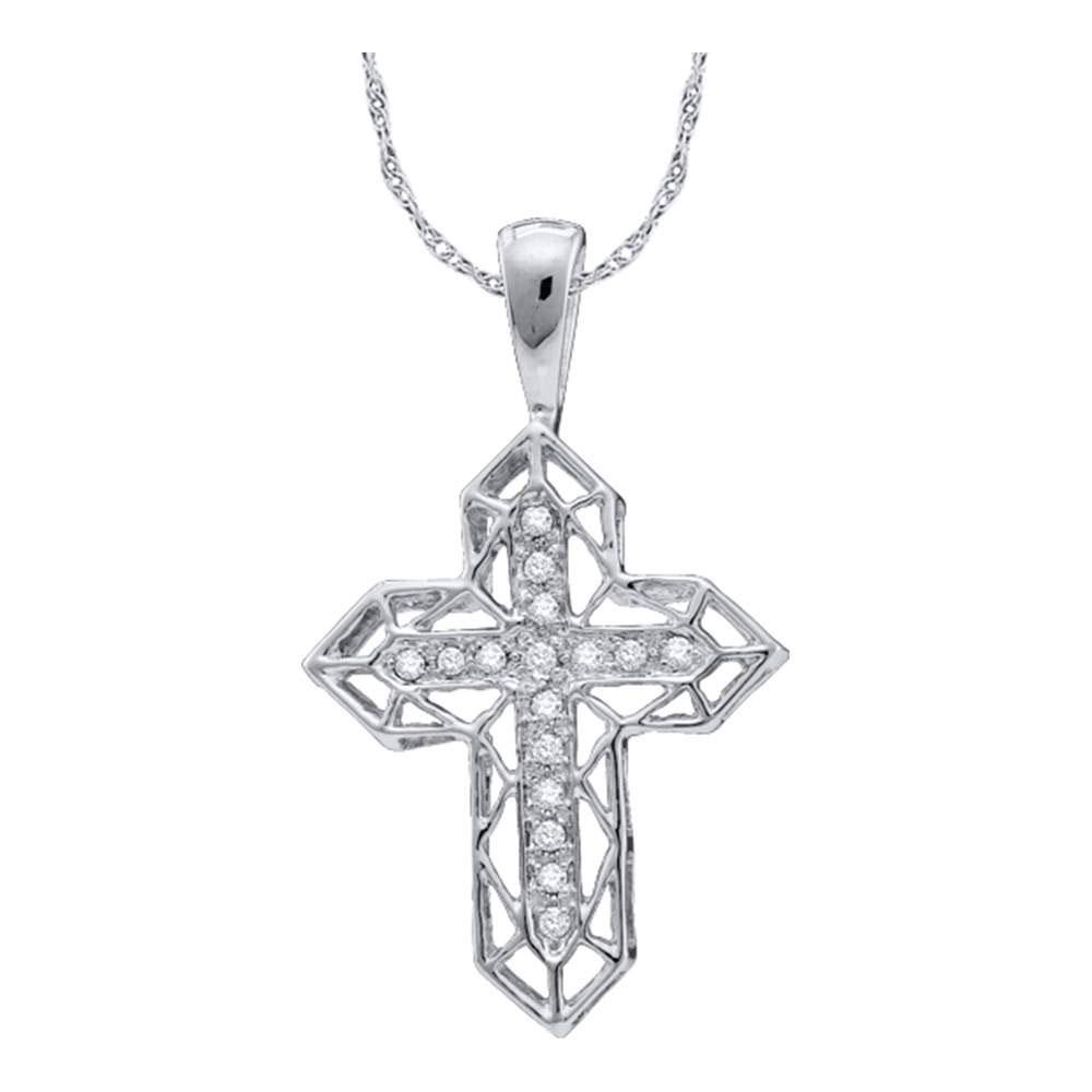 10kt White Gold Womens Round Diamond Cross Frame Religious Pendant 1/8 Cttw
