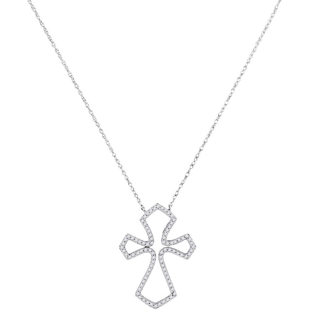 10kt White Gold Womens Round Diamond Cross Pendant 1/4 Cttw