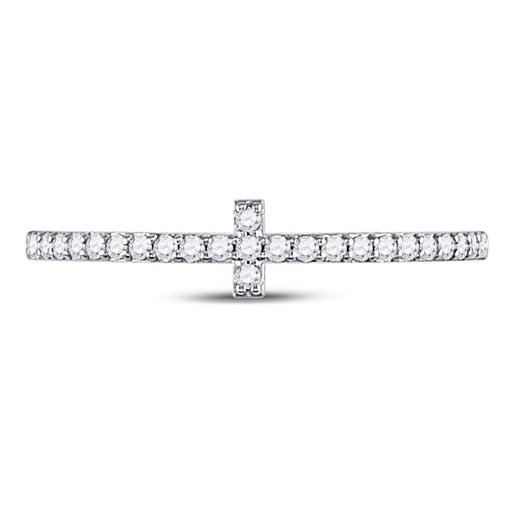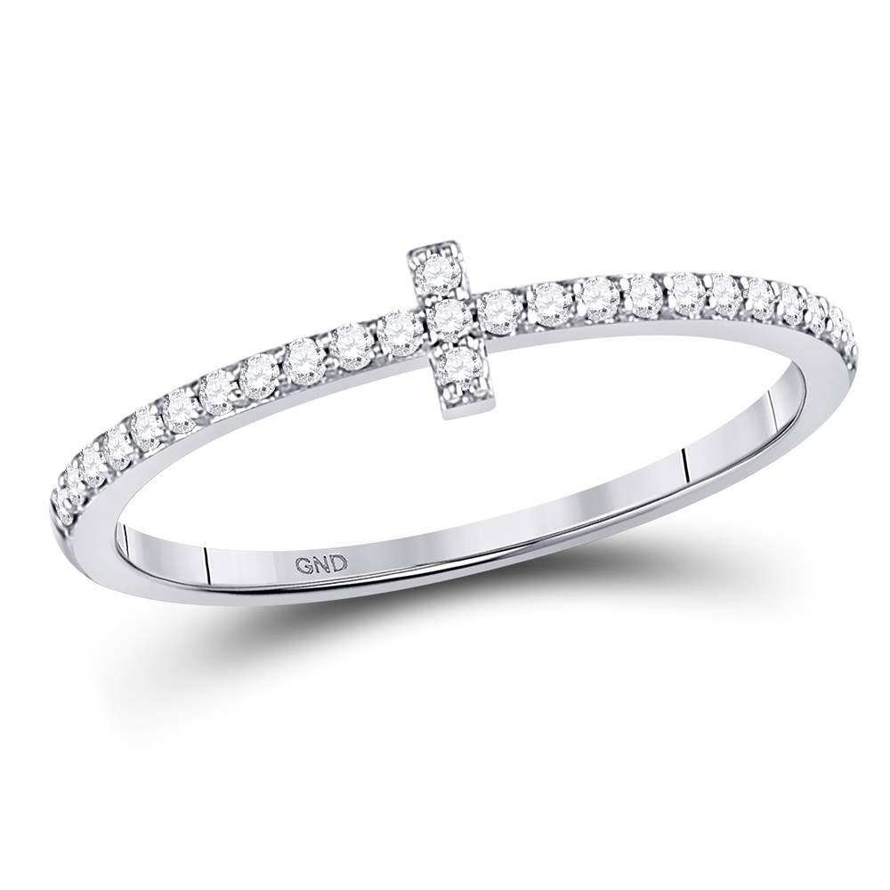 10kt White Gold Womens Round Diamond Cross Stackable Band Ring 1/6 Cttw